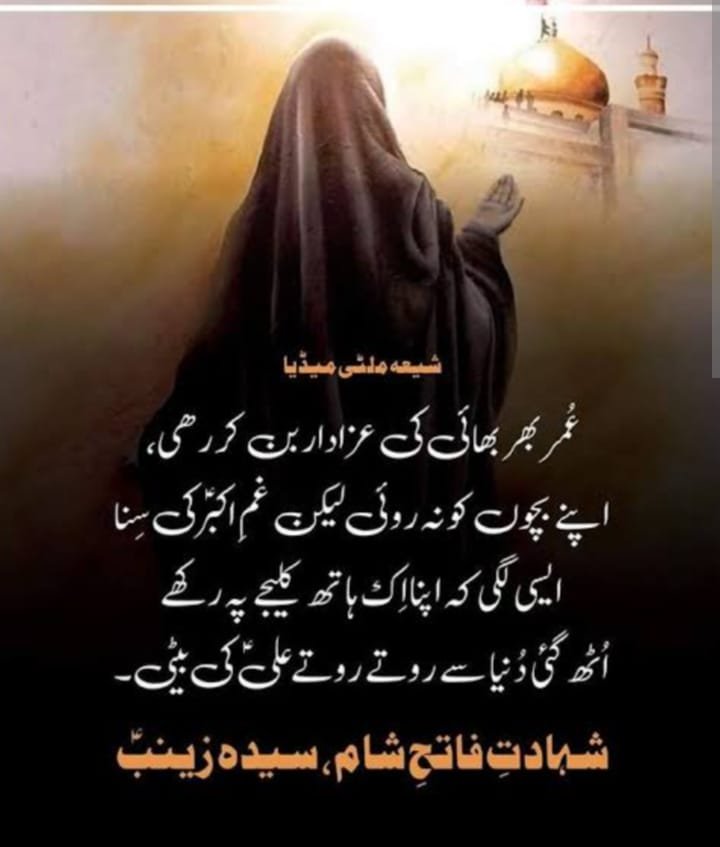 15 Rajab 62 Hijri ko Hazrat Bibi Zainab (R.A) ka wisal hua